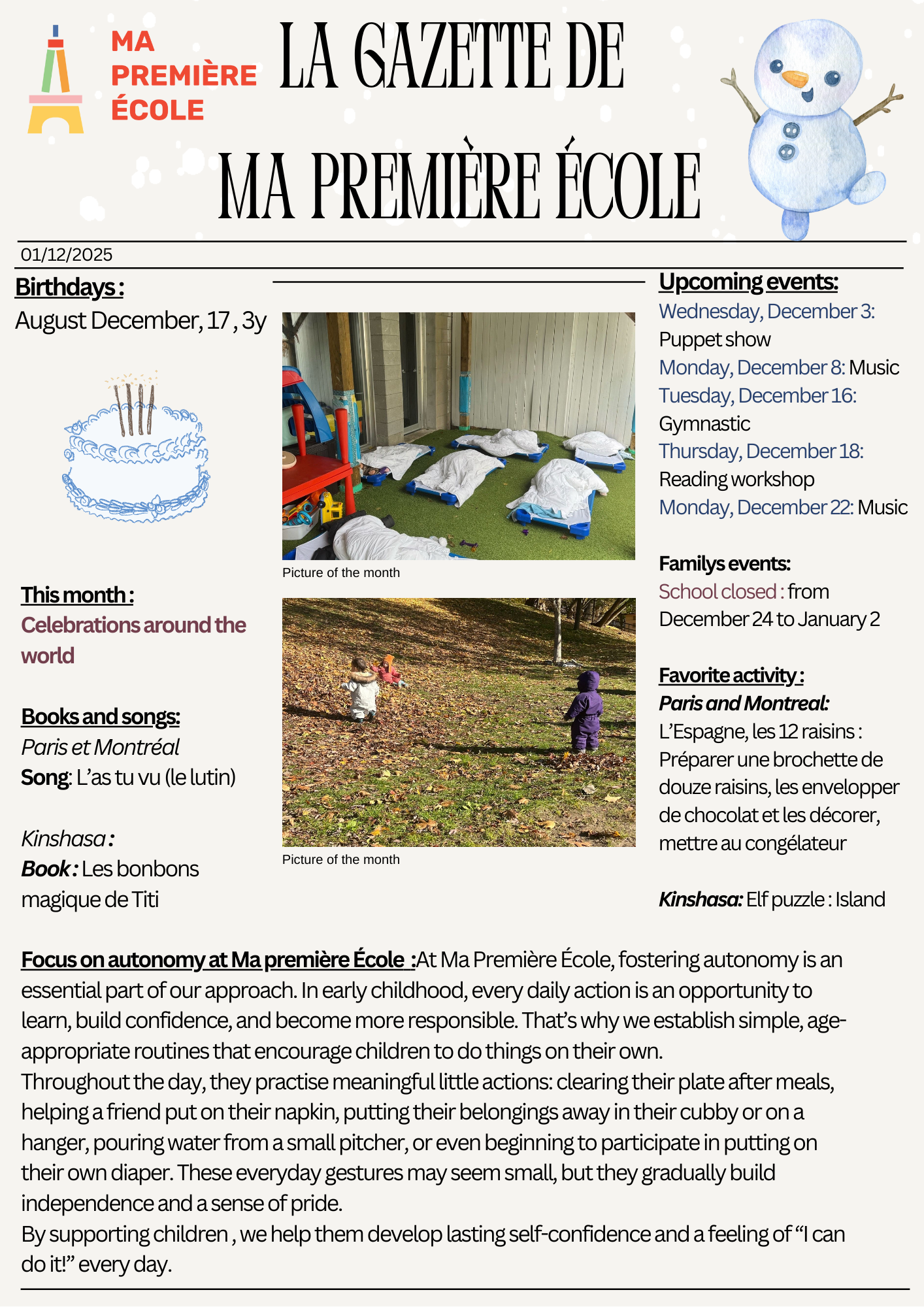 Ce mois-ci à Ma Première École, nous avons partagé de bons moments autour des fêtes, de la découverte des traditions dans d’autres pays ainsi que de la vie en communauté.